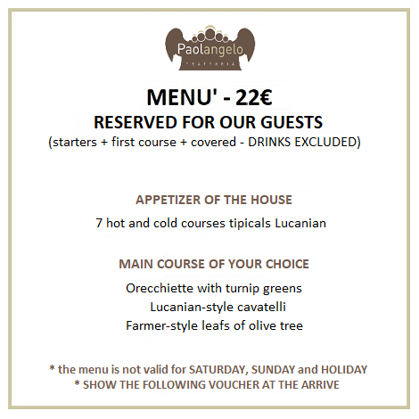 TRATTORIA PAOLANGELO, si trova a due passi da noi e rappresenta davvero la classica Trattoria Materana dove fare tappa obbligata se sei a Matera. Qui potrai assaporare il gusto della tradizione locale, senza troppi complimenti, andando dritti all’essenziale.